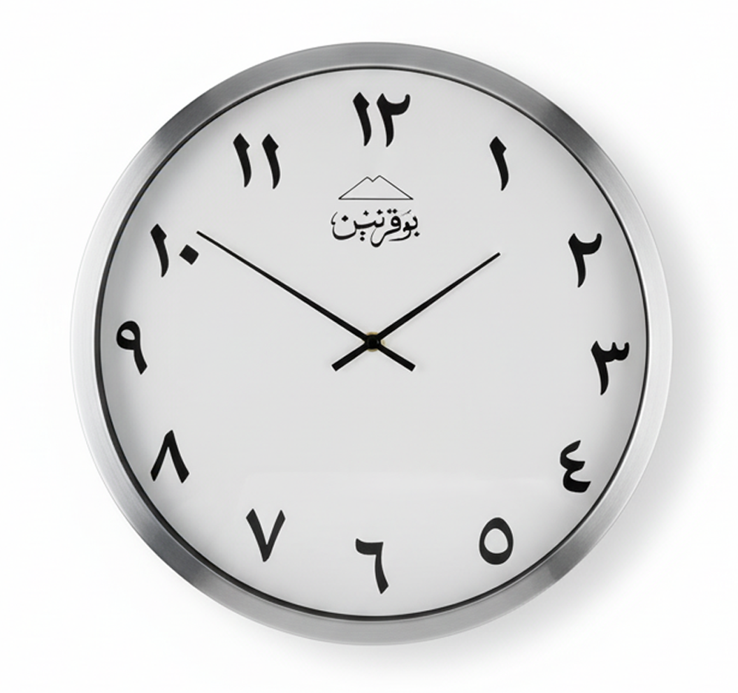Son cadre en aluminium brossé lui confère une finition raffinée et durable. Le mouvement silencieux, fidèle à la philosophie Boukornine, garantit une atmosphère calme, où seul le temps s’exprime.
